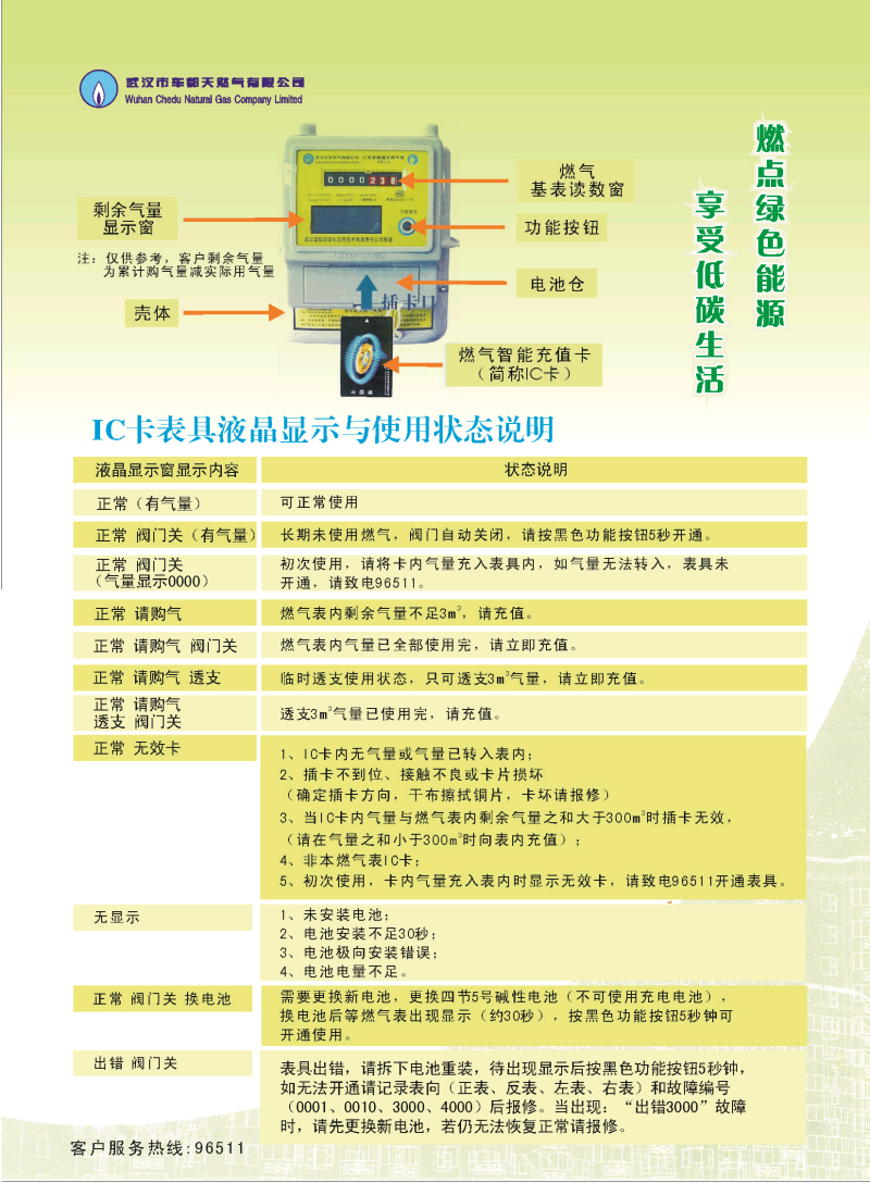 IC卡表具液晶显示与使用状态说明以及燃气IC卡表具功能与使用
