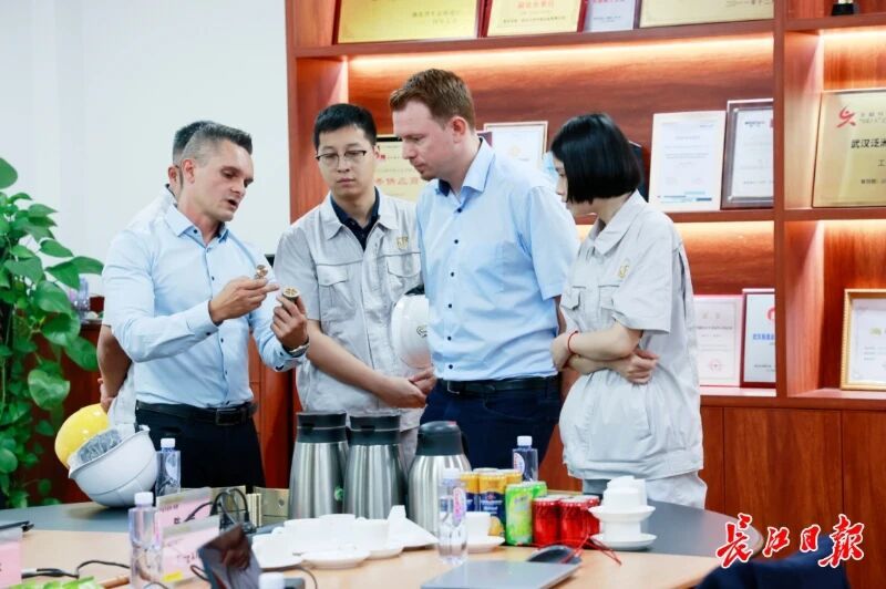 ▲武汉泛洲中越合金有限公司与德国利勃海尔集团现场交流产品细节。