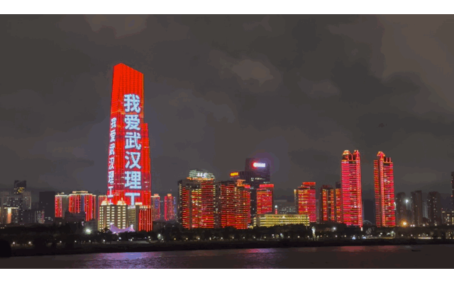 汽笛鸣响,“古琴号”缓缓离岸、驶向江心。两江四岸,光影璀璨。长江大桥、黄鹤楼、绿地金融中心、长江二桥……长江两岸,幢幢标志性建筑渐次点亮。楼宇林立,桥梁飞架,在灯光的映射中流光溢彩,美轮美奂。“以武汉理工之名 赴中国车谷之约”等字样跃动其间,为江城梦幻夜景更添一抹亮色。
