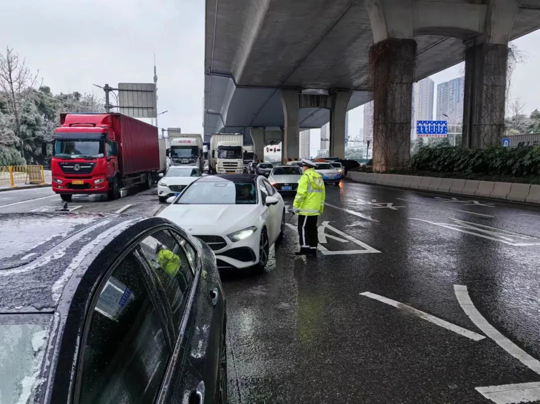 因道路积雪,汉洪高速收费站临时关闭,只允许大货车通行。区交通大队民辅警第一时间对出城车辆耐心开展劝返,连续疏导车辆4300余台次,并联合城管等多部门在路面投撒工业用盐。