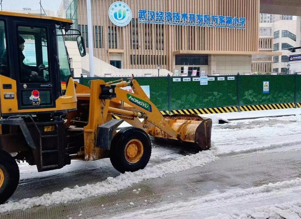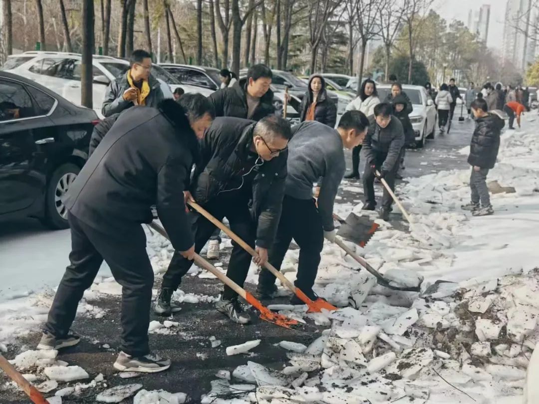 当天,车谷城发集团下属车都建发、车谷建工,中冶建工,区城管,沌阳街道及家长志愿者与实验小学党员干部、教师一起参与铲雪活动。经过一天奋战,学校广场及校园主要通道积雪已基本清理完毕。