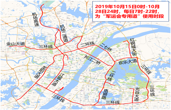 “军运会”交通管理措施自2019年10月15日0时起实施,至2019年10月28日24时止。