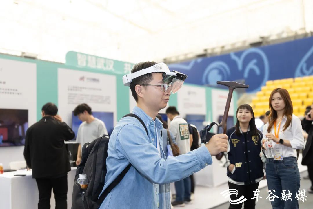 “哇,我看到编钟了。”在武汉科技专区,湖北大学AI&AR畅游荆楚展台前,市民刘女士戴上AR眼镜,就仿佛置身于曾侯乙编钟前,拿起“小木槌”敲击虚拟编钟还能敲出动人的音乐,“太有趣了,真好玩。”