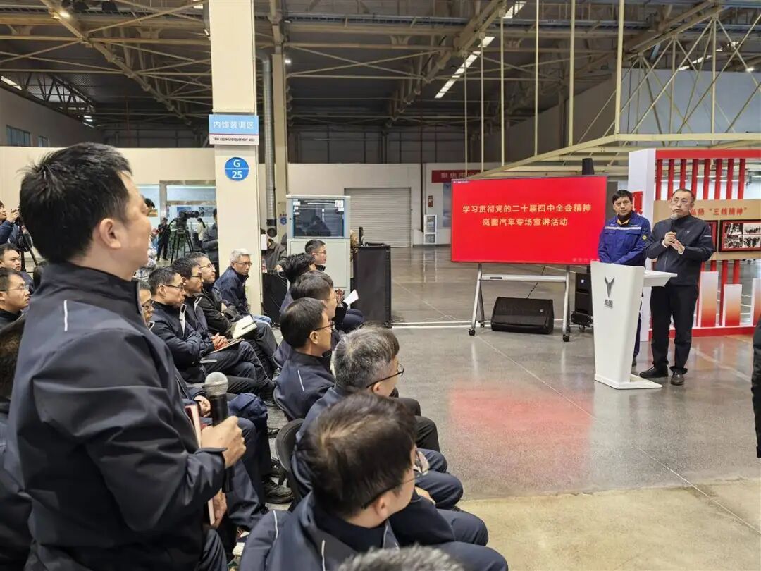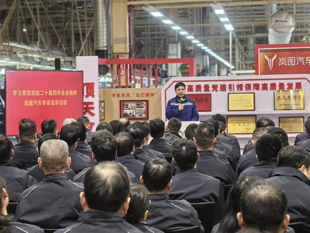 冬日的暖阳,播洒在岚图汽车智能制造工厂。一辆辆崭新的新能源汽车,在流转的产线上稳步向前,整装待发。12月22日,一场特别的宣讲——学习贯彻党的二十届四中全会精神岚图汽车专场,直接“开”进了总装车间的火热现场。