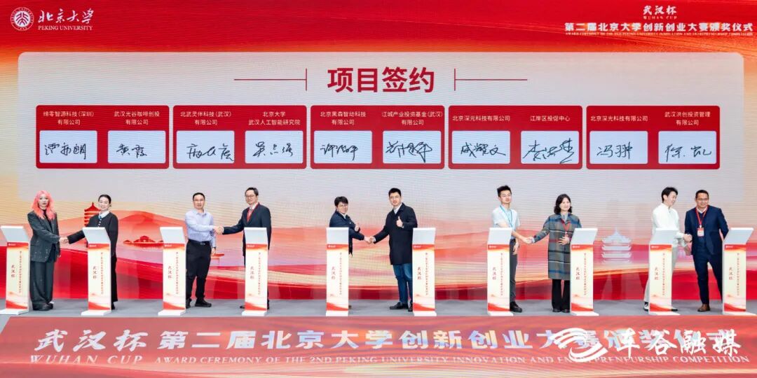 签约环节中,本届10个优秀创新创业项目签约落户武汉,3个北大科研团队在武汉揭榜领题。其中,智群机器人项目落户武汉经开区,该项目致力于推动人工智能从“单点突破”迈向“群体智能”,自主研发FastSwarm集群大脑,可以广泛应用在矿区勘探、智能巡检、应急搜救等场景中。北京大学力学与工程科学学院丁鼎力团队、工学院李张鑫团队分别揭下由智新科技和华砺智行两家经开区企业张榜的项目,这些项目紧贴企业真实技术瓶颈与创新发展需求,将进一步推动产学研融合发展。