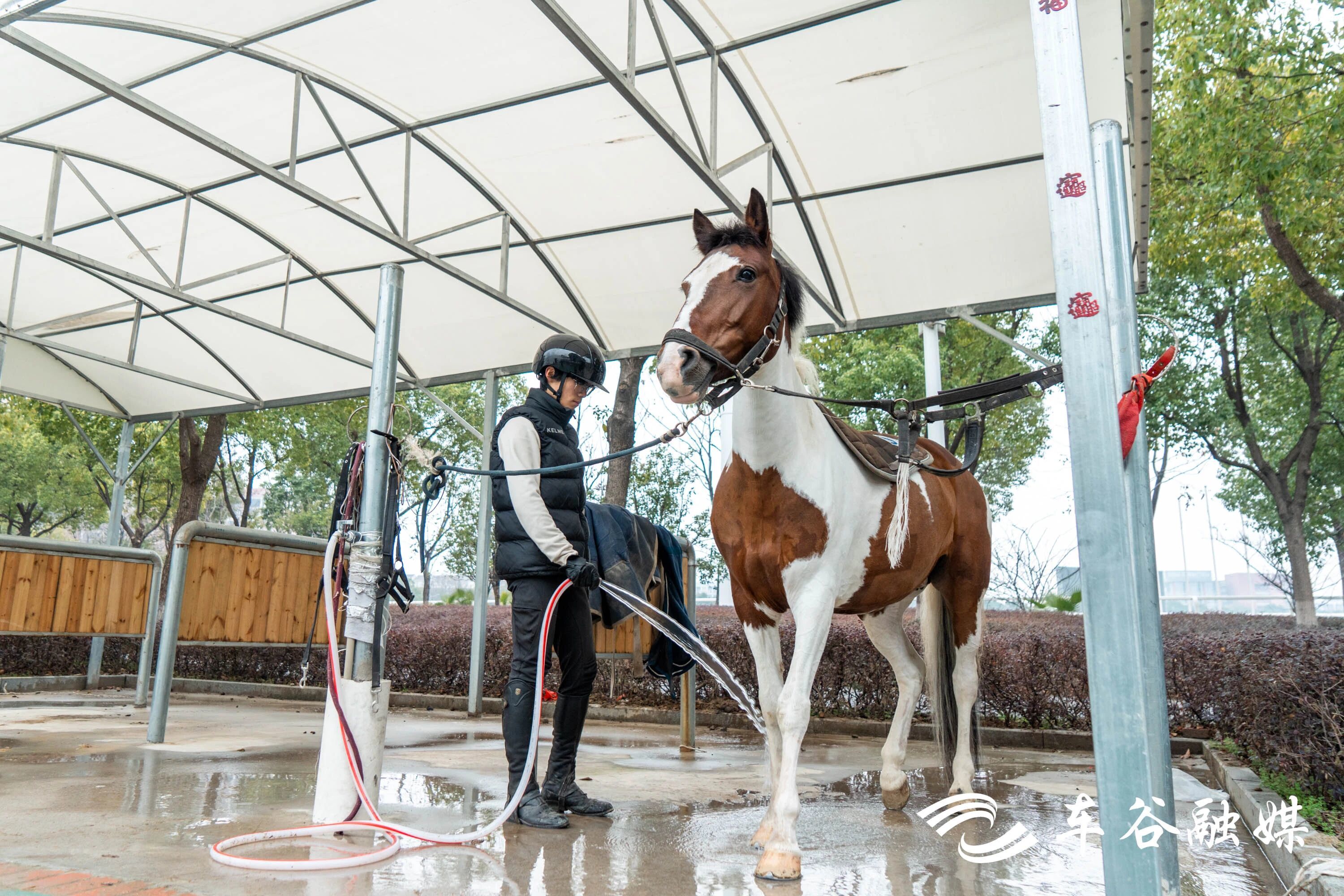这种“团圆”,不仅仅属于人。朱梦月说,学校“陪马过年”的传统从2012年延续至今,早已超越单纯的照料,成为情感与专业的双重培养。“在铲马粪、编马辫、骑乘的日常里,不仅练习马术,还有责任、耐心与爱。”朱梦月说。“马不会说话,但陪伴久了,就能读懂它的眼神。”