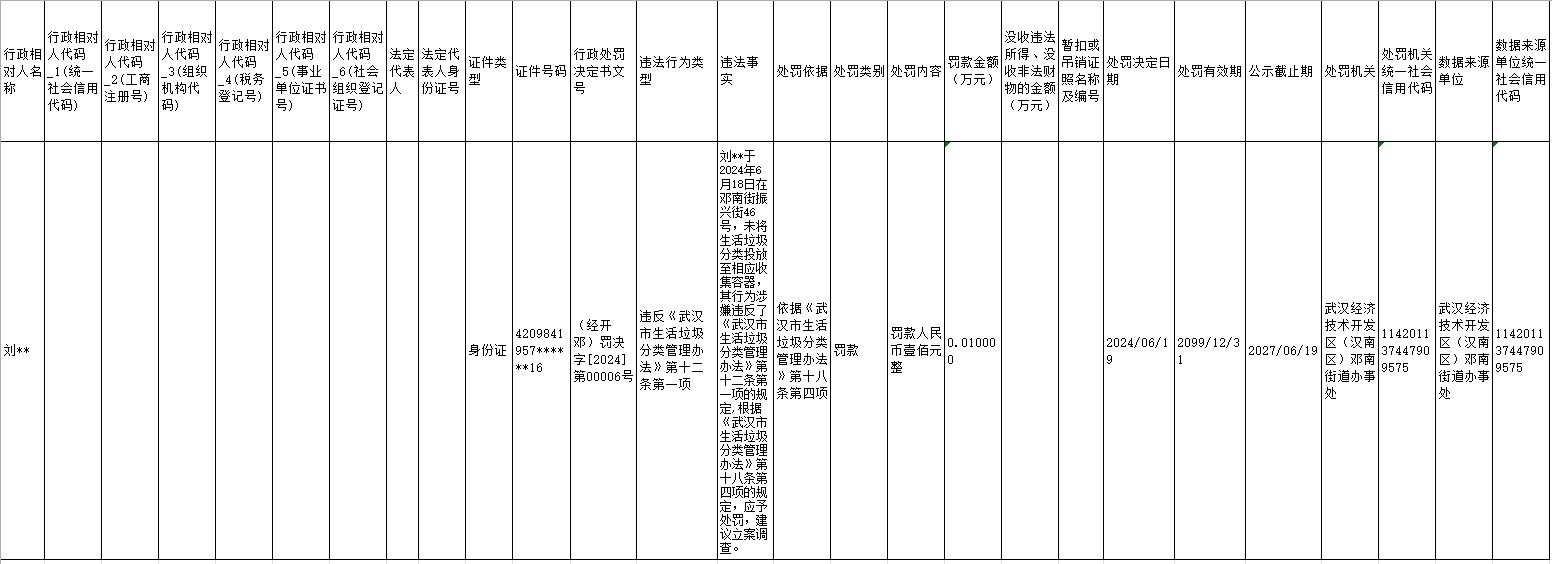 对未将生活垃圾分类投放至相应收集容器的处罚(刘某某)