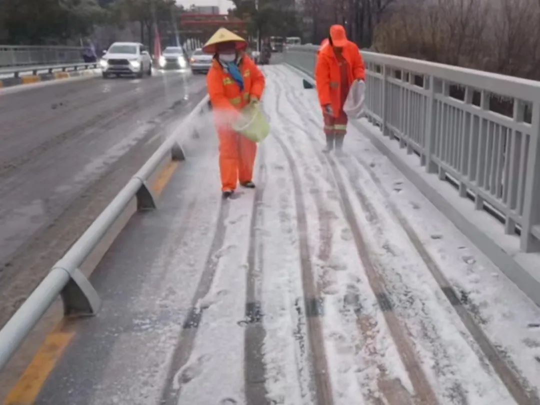 据了解,2月2日21:00–2月3日6:00,武汉经开区城管执法局共出动融雪防冻巡查备勤人员1230余人,巡查车辆37台,撒布机21台、除雪车3台。巡查人员对东风高架、三环线、车谷大道、江城大道、纱帽大道等重点桥梁及道路进行不间断巡查测温。目前,已对东风高架、三环线、南太子湖桥、车谷大道等道路桥梁进行预撒盐20多吨。