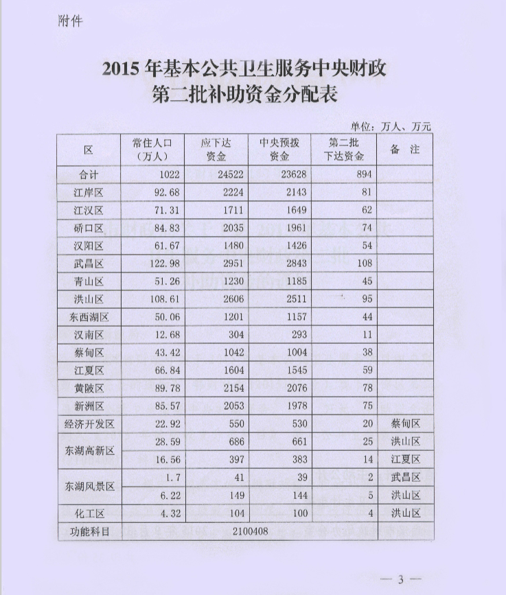 市财政局关于下达2015年基本公共卫生服务中央财政第二批补助资金的通知-武财社[2015]740号